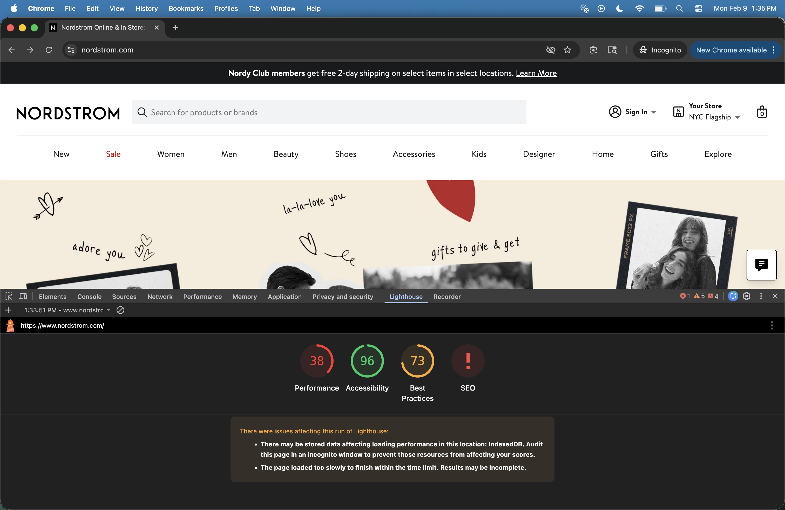 To a human being, the site is fast.NoIf you open the Nordstrom homepage on a 2026 iPhone, the experience is flawless. High-resolution imagery snaps into view, the navigation is instantaneous, and the checkout flow is seamless. To a human being, the site is fast. ( See our screenrecording below)